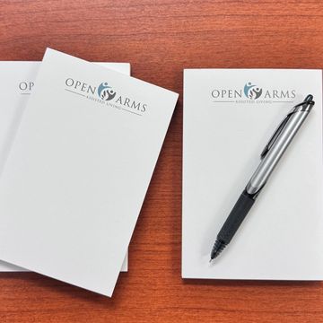 Stay organized with the Open Arms Assisted Living notepad. Perfect for jotting down notes, reminders, or messages, it’s a handy accessory for home or work-showing your pride every time you write!